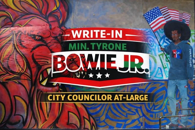 Min. Tyrone Bowie Jr started providing community art pieces to his local youth programs he attended at 13 years old in Holyoke MA. 1992 Tyrone learned at that young age being a Black urban young man would have it challenges, His love for art was the only relaxing thing he had to regain a sense of calm to his life. He used his arts skills and drive to help his community to up lift and inspire his neighbors. Min. Bowie Jr. has continues this work to this day for all to enjoy his art and gain equality.